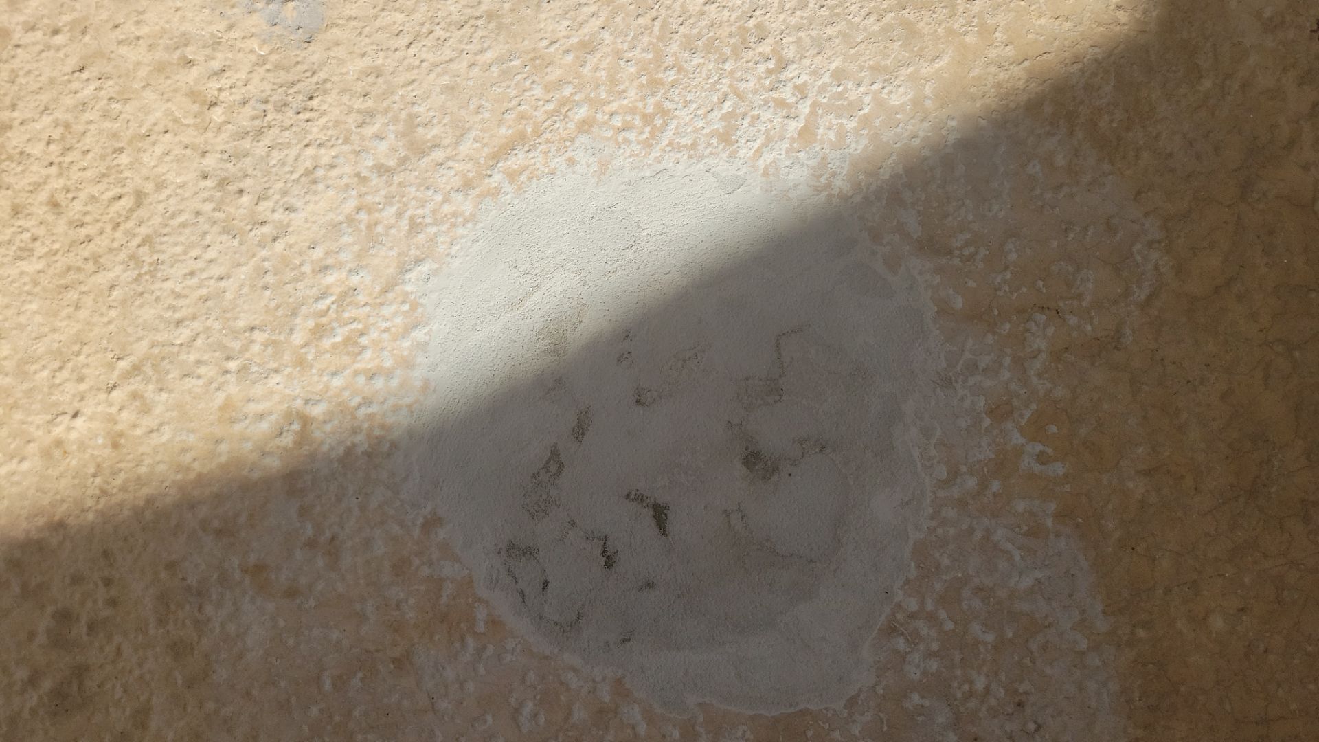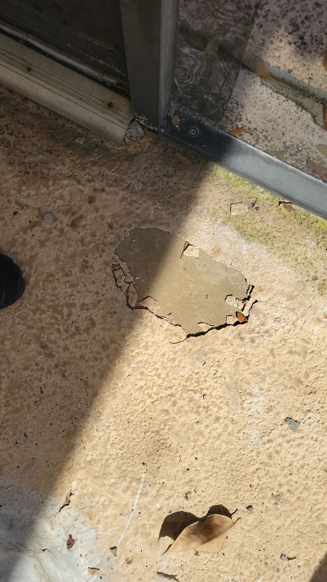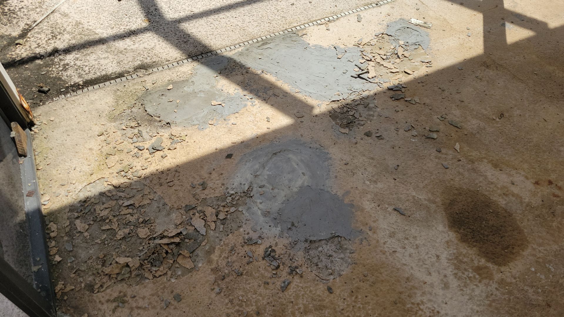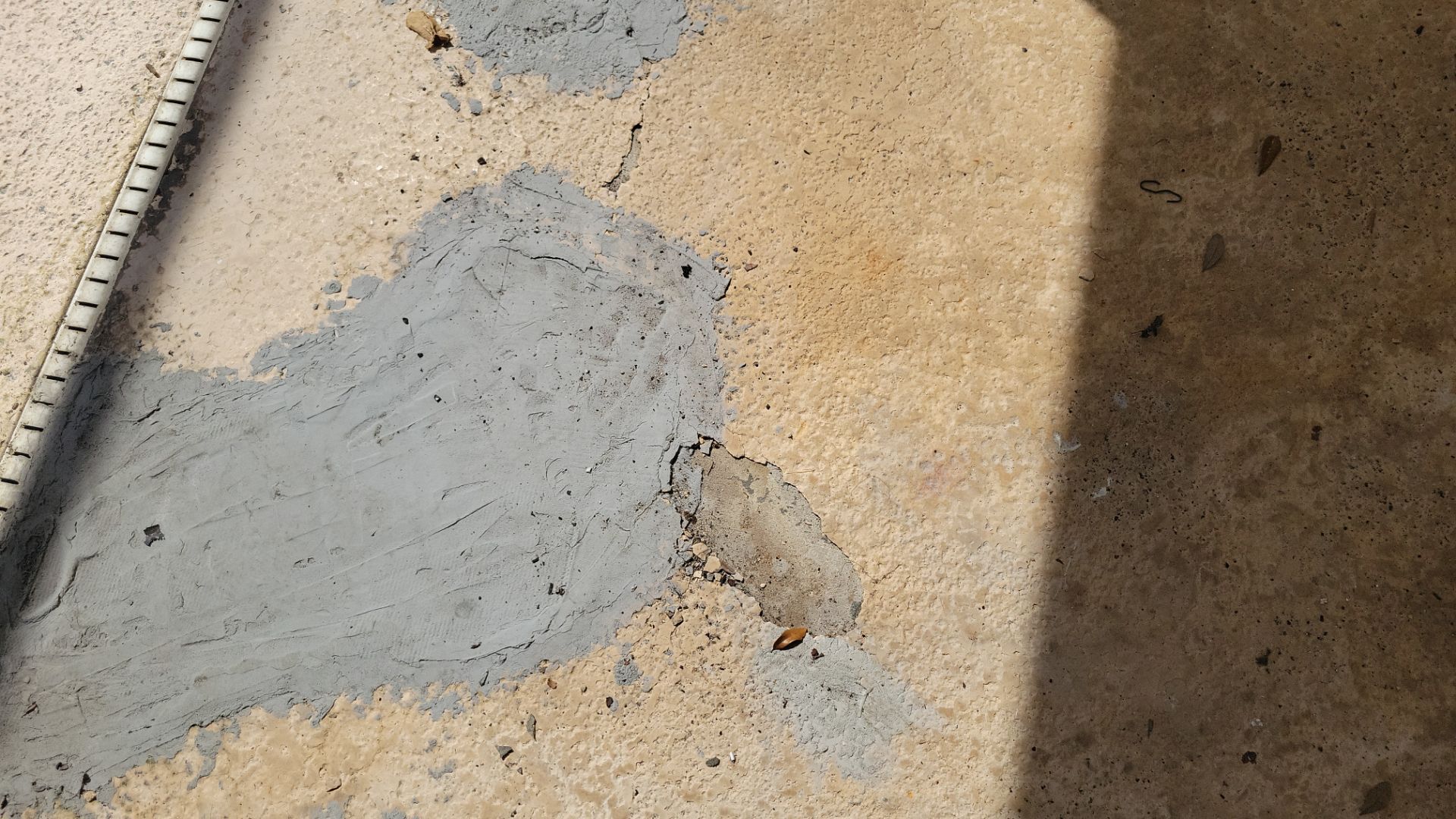 - Failed, peeling coating removed and surface stabilized with concrete patch before sealing