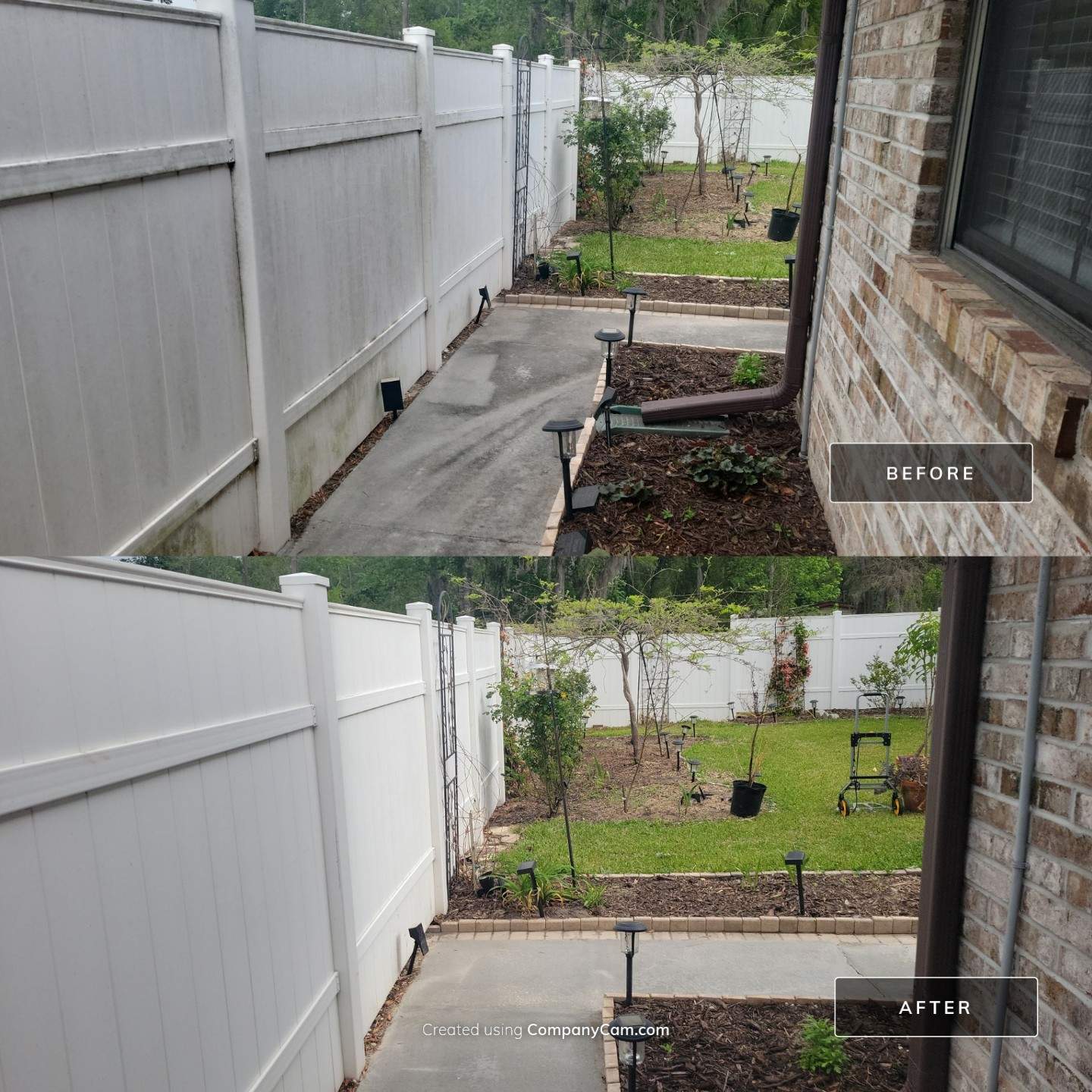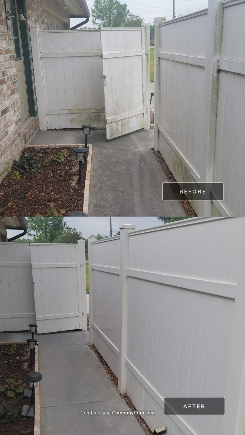 - Vinyl fence panels returned to bright, mold-free white across all sides of the property